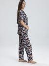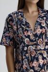 Göz alıcı şal desenleriyle hareket kazanan bu önden düğmeli kadın pijama takımı, ev giyimine zarif bir dokunuş katıyor. Lacivert zemin üzerine uygulanan zarif desen detayları, klasik yaka ve rahat kalıpla buluşarak şıklık ve konforu bir araya getiriyor. Yumuşacık kumaşıyla gece boyunca rahatlık sunar, şık görünümüyle gün boyu ev stilinizi tamamlar.