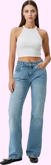 Bu sezonun en trend jean modeliyle tanışın! Düşük bel tasarımı ve modern flare paçası ile göz alıcı bir görünüme kavuşacaksınız. %100 pamuk kumaşı sayesinde gün boyu konfor ve rahatlık hissedeceksiniz. Sıradan bir günden özel bir geceye kadar her anınızı şık ve rahat bir şekilde geçirmenizi sağlayacak olan bu jean, gardırobunuzun vazgeçilmez parçası olacak. Hafifçe yıpratılmış denim dokusu ve düz rengi ile zamansız bir şıklık sunuyor. İspanyol paçası ile bacak boyunuzu olduğundan daha uzun gösterirken, düşük beli de ince belinizi vurgular. Her vücut tipine uyum sağlayan bu jean, farklı kombin seçenekleri sunar. Bir tişört ve spor ayakkabı ile günlük şıklık yakalayabilir, şık bir bluz ve topuklularla daha iddialı bir görünüm yaratabilirsiniz. Tüm gün süren konforu ve şıklığı deneyimleyin. Makinede yıkanabilir olması da pratik kullanım sağlar.