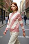 Ersefa Kadın Düşük Kol Bisiklet Yaka Triko Kazak Renk Bloklu Tasarımıyla Kış Kombinleri İçin Kaliteli