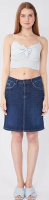 Blue White Kadın Kot Etek %98 Pamuk %2 Elastan Modelin Ölçüleri: Boy:1,78 Bel:67 Göğüs:85 Kalça:102 Numune Bedeni 'S' Bedendir