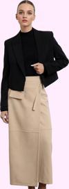 Bu sezonun trendlerinden biri olan bej renkli maxi etek, gardırobunuzun yeni favorisi olacak. Modern ve şık tasarımıyla her ortamda rahatlıkla kullanabileceğiniz bu etek, %88 polyester ve %12 elastan karışımıyla hem konforlu hem de dayanıklı. Anvelop kalıbıyla vücudunuza kusursuz bir şekilde otururken, kemer detayı ile belinizi olduğundan daha ince gösterecek. Ramadan koleksiyonumuzdan özel olarak seçilen bu etek, düz tasarımıyla her türlü üst giyimle kolayca kombinlenebiliyor.