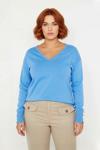 Kadın V Yaka Geniş Kalıp Yünlü Triko Kazak Uzun Kollu Fitilli Düz Basic Günlük Kombinlerin - Image 1