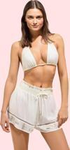Bu muhteşem ekru plaj şortuyla yazın tadını çıkarın! Crinkle dokuma kumaşın hafif ve nefes alan yapısı, gün boyu rahatlık sunar. Düz desen ve aksesuar detaylarıyla şık ve modern bir görünüm yakalayın. Normal bel yüksekliği ve geniş paçası sayesinde vücudunuzu sararak kusursuz bir uyum sağlar. Kısa boyu ile hareket özgürlüğünüzü kısıtlamaz, plajda veya havuzda rahatça vakit geçirin.
