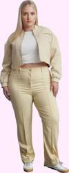 Günlük yaşamınızda ve iş hayatınızda şık ve rahat görünmek için tasarlanan bu bej kadın pantolonu, benzersiz bir konfor deneyimi sunar. Yüksek bel tasarımı ve geniş paçası ile modern ve şık bir görünüm yaratırken, yumuşak dokuma kumaş yapısı gün boyu rahat etmenizi sağlar. Nefes alabilir yapısı ve özel kumaş bileşimi sayesinde (64% polyester, 33% viskoz, 3% elastan) sıcak yaz günlerinde bile serin ve rahat hissetmenizi sağlayacaktır. Düz deseni ve düz kesimi ile her ortamda şık bir görünüm sunan pantolon, çeşitli kombinlerle tarzınızı yansıtabilirsiniz. Uzun boyu ve kemersiz tasarımı ile pratik ve şık bir kullanım sunar.