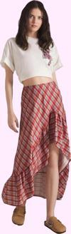 PayBuy Kadın Ekose Desenli Asimetrik Midi Etek Viskoz Yazlık Günlük Hafta Sonu Yaz Aylarının Vazgeçilmezi