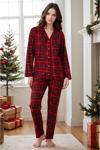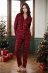 Kadın Ekose Desenli Kışlık Düğmeli Yılbaşı Pijama Takımı - Yılbaşı Koleksiyonu