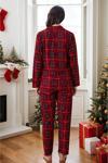 Kadın Ekose Desenli Kışlık Düğmeli Yılbaşı Pijama Takımı - Yılbaşı Koleksiyonu