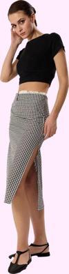 Bu göz alıcı etek ile yaz aylarına şık bir giriş yapın! Belden düğmeli ve fırfırlı detayı ile feminen ve modern bir tarzı birleştiren bu etek, ekose deseniyle her kombine uyum sağlar. %50 Pamuk, %50 Polyester karışımı Terrycotton kumaşı ile hem rahat hem de nefes alabilir bir deneyim sunar. A-line kesimi her vücut tipine mükemmel uyum sağlar, midi boyu ise her ortama uygun bir görünüm yaratır. Günlük kombinlerinizden özel davetlerinize kadar her yerde rahatlıkla kullanabilirsiniz.
