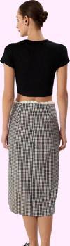 Ersefa Kadın Ekoseli A line Midi Etek Belden Düğmeli Fırfırlı Yazlık Tasarım Yaz Aylarının Vazgeçilmezi