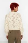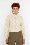 Ersefa Kadın Ekru Ajurlu Dik Yaka Uzun Kollu Regular Kalıp Süper Crop Triko Kazak İlkbahar Sonbahar Şıklığı