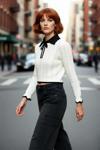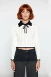Ersefa Kadın Ekru Akrilik Ajurlu Triko Kazak Polo Yakalı Fiyonk Detaylı Crop Boy Modern Stil Kaliteli