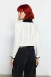 Ürün Özellikleri: Regular kalıp, akrilik materyal, ajurlu desen, polo yaka, standart kol, triko kumaş, ekru/siyah renk, crop boy, ince kalınlık.