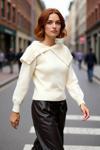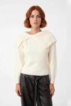 Ürün Özellikleri: Regular kalıp, akrilik materyal, düz desen, devrik yaka, uzun kol, triko kumaş, ekru renk, orta kalınlık, basic siluet, regular boy, çift plaka dokuma.