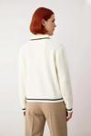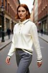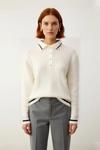 PayBuy Kadın Ekru Regular Kalıp Polo Yaka Düşük Kol Renk Bloklu Orta Kalınlık Triko Kazak Günlük Şıklık