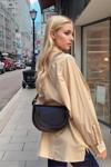 El işçiliğiyle üretilen çanta, kaliteli yapısıyla uzun ömürlü kullanım garantisi verir. Düz hatlı, yuvarlak formu şıklığıyla dikkat çekerken, metal aksesuarlar ise çantaya zarif bir dokunuş katar. Hem rahat hem de şık bir kullanım için tasarlanan çanta, gün boyu rahatlık sağlar.