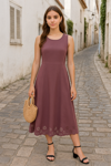 Kadın Etek Ucu Lazer Kesim çiçek Desenli Midi Boy Ithal Krep Elbise