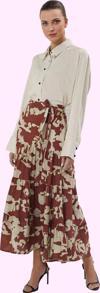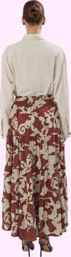Günlük stilinizi tamamlayacak, rahat ve şık bir etek arıyorsanız doğru yerdesiniz! Bu bordo renkli, etnik desenli maxi etek, %100 Viskoz Shally dokuma kumaştan üretilmiştir. A-line silüeti ile her vücut tipine uyum sağlarken, astarsız tasarımıyla yaz aylarında da rahatlıkla kullanılabilir. Etnik desenlerin modern yorumuyla benzersiz bir stile sahip olan bu etek, dokusuyla da oldukça dikkat çekicidir.