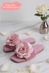 Aymelek Kadın Ev Terliği Çeyizlik Gül Desenli Tüylü Yumuşak Peluş Terlik