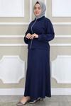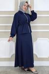 Ka Hijab Işıltı Detay Etekli Merserize Takım - Lacivert