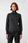 Kadın Fermuarlı Dik Yaka Regular Kalıp Selanik Dokuma Triko Kazak ile Kış Şıklığını Yakalayın