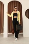 2503-AC-L Kadın Fermuarlı Kapşonlu Beyaz Bol Crop Sweatshirt