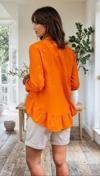 Kadın Fırfırlı, Arkası Uzun Pamuk Keten Rahat Kesim Bluz 3571210