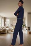 Bu iki parçalı pijama takımı, 36-44 beden aralığında mevcuttur. Örme kumaşı ile sıcak ve rahat tutarken, kolay bakımıyla pratik kullanım sağlar. Günlük ev kıyafeti olarak ya da rahat bir dış giyim seçeneği olarak kombinleyebilirsiniz. Eşsiz tasarımı ve kalitesi ile kendinizi özel hissedeceksiniz.