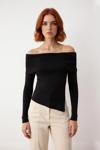 Ersefa Kadın Fitted Carmen Yaka Düz İnce Triko Bluz Uzun Standart Kol Şık Tasarım Günlük Ve Gece Kombinleri