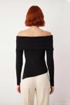Kadın Fitted Carmen Yaka İnce Triko Kazak Uzun Standart Kol Düz Premium İplik Sonbahar Şıklığı