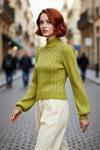 PayBuy Kadın Fitted Dik Yaka Ajurlu Balon Kol Crop Triko Kazak Şık Günlük Kombinleriniz İçin İdeal Bir