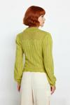 Ürün Özellikleri: Fitted kalıp, akrilik materyal, ajurlu desen, dik yaka, balon kol, triko kumaş, gri renk.