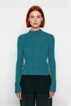 Ersefa Kadın Fitted Dik Yaka Fitilli Uzun Kollu Triko Kazak Günlük Basic Siluet Kış Sonbahar Konforu