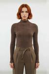 Kadın Fitted Dik Yaka Fitilli Uzun Kollu Triko Kazak Günlük Basic Siluet Kış Sonbahar Konforu