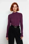 Ersefa Kadın Fitted Dik Yaka Fitilli Uzun Kollu Triko Kazak Günlük Basic Siluet Kış Sonbahar Konforu
