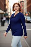 Ürün Özellikleri: Fitted kalıp, 100% yün/viskon materyal, düz desen, V yaka, standart kol, triko kumaş, lacivert renk.