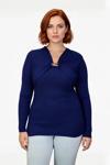 PayBuy Kadın Fitted Kalıp Fitilli Triko Kazak Özel İplik Aksesuar Detaylı V Yaka Şık Tasarım Kaliteli