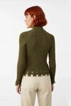 Ürün Özellikleri: Fitted kalıp, akrilik materyal, fitilli desen, dik yaka, reglan uzun kol, triko kumaş, bordo renk, crop boy.