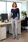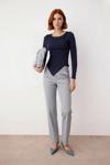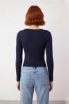 PayBuy Kadın Fitted Lacivert Bisiklet Yaka Triko Kazak Modern Asimetrik Kesim İlkbahar Sonbahar Şıklığı