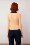 Ürün Özellikleri: Fitted kalıp, viskoz polyester poliamid materyal, renk bloklu desen, polo yaka, standart uzun kol, fitilli triko kumaş, açık şeftali renk, baskısız tasarım.