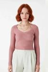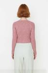 Ürün Özellikleri: Fitted kalıp, akrilik materyal, düz desen, V yaka, reglan kol, fitilli kumaş, pembe renk, baskısız tasarım.