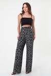 Kadın Füme Pix Leopar Desenli Yüksek Bel Palazzo Pantolon
