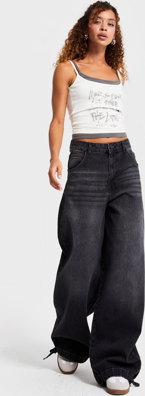 Its Basic Kadın Füme Renk 2w5-1 Straight Baggy Fit %100 Koton Paça Bağcık Detaylı Bol Kesim Denim Jean