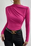 Kadın Fuşya Belden ve Boyundan Büzgü Detaylı Uzun Kollu Bluz