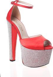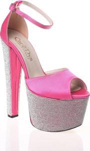 Ersefa Kadın Fuşya Saten Ökçe Poli Taş Yüksek Topuk Abiye Ayakkabı Kadın Topuklu Şık Gece Ayakkabısı