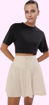 Ersefa Kadın Gabardin Dokuma Kloş Mini Etek Yüksek Bel Rahat Günlük Hafta Sonu Yaz Aylarının Vazgeçilmezi