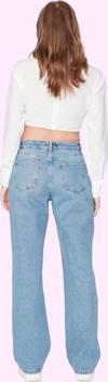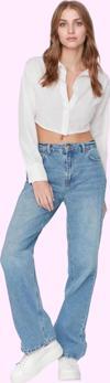 Rahatlığı ve şıklığı bir arada sunan bu kadın kot pantolonu, günlük yaşamınızda tarzınızı yansıtmanız için mükemmel bir seçenek. Düşük beli ve geniş paçası ile son derece konforlu bir kullanım deneyimi sunarken, %100 pamuk yapısı sayesinde gün boyu nefes alabilirlik sağlar. Mavi rengi ile her türlü kombininize uyum sağlayan bu pantolon, modern ve şık görünümünüzü tamamlayacaktır. Fermuarlı kapama sistemi kolay kullanım sunar. Cepsiz tasarımı minimalist bir tarz yaratırken, regular boyu her vücut tipine uyum sağlar. Yazın sıcağında bile rahat hissetmenizi sağlayan nefes alan yapısı ile gün boyu özgürce hareket edebilirsiniz. Pamuklu kumaşı sayesinde kolayca yıkayıp tekrar tekrar kullanabilirsiniz. Bu geniş paça kot pantolonu, tişörtler, bluzlar ve spor ayakkabılarla rahatlıkla kombinleyebilirsiniz. Şık ve rahat bir görünüm için ideal olan bu pantolon, tarzınıza farklı bir boyut katacaktır.