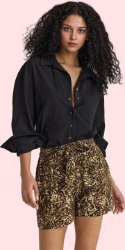 Dokuma kumaşın yumuşak dokusu ve nefes alabilir özelliği, yaz sıcaklarında serin kalmanıza yardımcı olur. Geniş paça tasarımı ise özgür hareket kabiliyeti sunar. Yüksek bel detayları, vücudunuzu kusursuz bir şekilde sararak, zarif ve modern bir görünüm sağlar. Leopar deseni, şorta enerjik ve dikkat çekici bir hava katar. Bu şort ile çeşitli üst giyim seçeneklerini birleştirerek, kendi tarzınıza uygun farklı kombinler yaratabilirsiniz. Günlük kullanım için mükemmel olan şort, her vücut tipine uyum sağlayacak şekilde tasarlanmıştır.