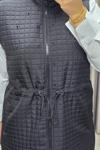 Kadın Tesettür Büyük Beden Kapüşonlu Fermuarlı Kürklü Piramit Desen Şişme Kapitone Yelek  - Image 1