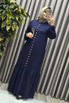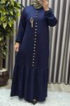 Kristal düğme detayları, elbiseye sofistike bir dokunuş katar.