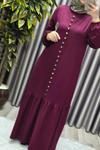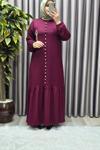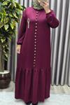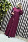 Elmas Tesettür markasının şıklığı ve zarafeti bir araya getiren bu elbise, bordo rengiyle dikkat çekiyor.